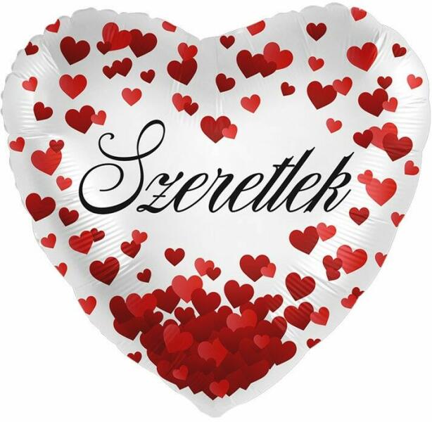 Szív alakú, fehér színű, Szeretlek feliratos és szivecskés mintás fólia lufi, 45cm méretben. Valentin-napra ajánljuk, vagy szerelmes pároknak ajándékba. Szív alakú, fehér színű, Szeretlek feliratos és szivecskés mintás fólia lufi, 45cm méretben. Valentin-napra ajánljuk, vagy szerelmes pároknak ajándékba. Anyaga: Fólia. Méret: 45cm