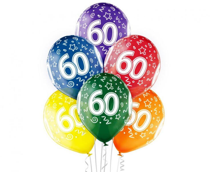 Colorful Happy Birthday 60 léggömb, lufi 6 db-os 12 inch (30cm) Anyaga: latex/gumi Mérete: 30 cm (12 inch) A lufi tartó pálca + csésze külön megvásárolható áruházunkban.