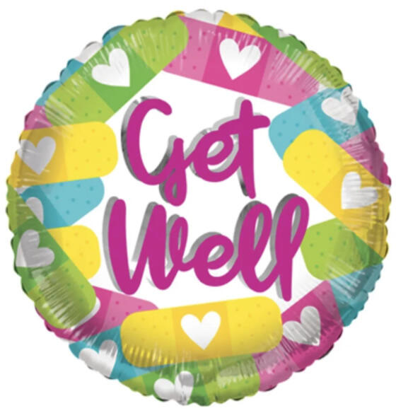 Fólia lufi, Get Weel (Jobbulást) felirattal. A léggömb héliummal és levegővel egyaránt tölthető. Mérete : 46 cm