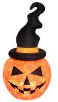 Home felfújható Halloween tök (KD 180 T). kül- és beltéri kivitel IPX1- es figura: havazásnak, csepegő esőnek ellenáll belső LED projektorral beépített ventilátor a felfújáshoz tartozék 4 db leszúrótüske és 2 db rögzítőzsinór tápellátás: kültéri hálózati adapter méret: ?94 cm, 183 cm tápkábel hossza: 180 cm
