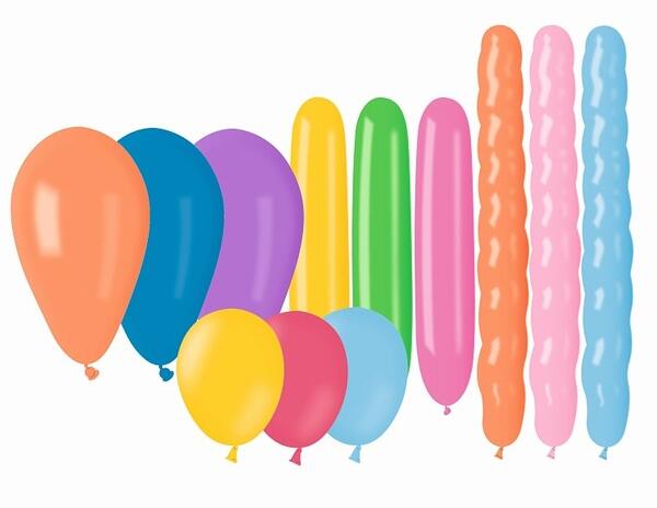 Különböző méretű, formájú és színű mókás lufi csomag. A csomag 25 db lufit tartalmaz.