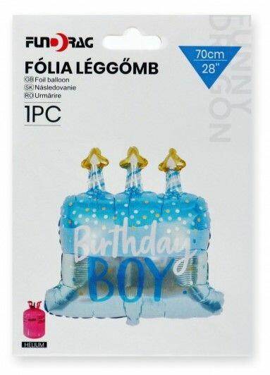 Lufi fólia Birthday Boy torta kék 70cm 637840 Dekoráld a buli/party helyszínét ezzel a kék szülinapi tortás fiús lufi fóliával, hogy látványosabb és ízlésesebb legyen a szórakozás. Befoglaló méretek 13x1x18 cmAnyaga fólia