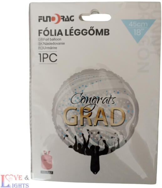 Kör alakú gratulálunk feliratos ballagási fólia lufi Felfújható : levegővel vagy héliummal Mérete: 45 cm magas A csomag tartalma: 1 db lufi + 1 db szívószál a felfújáshoz