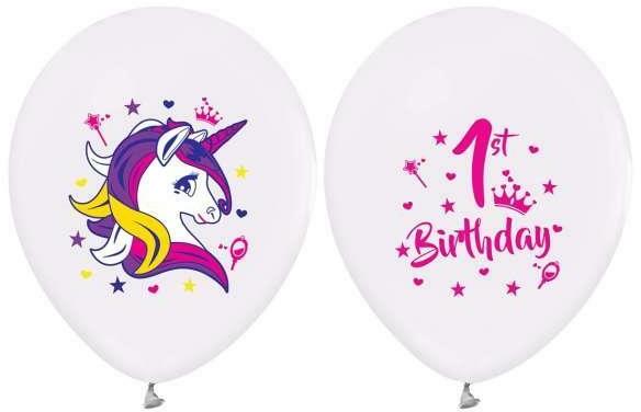 Unikornis mintás Happy Birthday léggömb, lufi 5 db-osAnyaga: latex/gumiMérete: 12 incs (30,5 cm)
