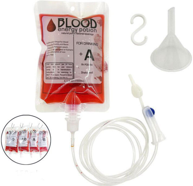 Halloween véres tasak, szörpöt, vagy színezett folyadékot lehet bele tenni, és úgy néz ki, mint egy véres infúzió. Nagyon jó, látványos halloween dekor.