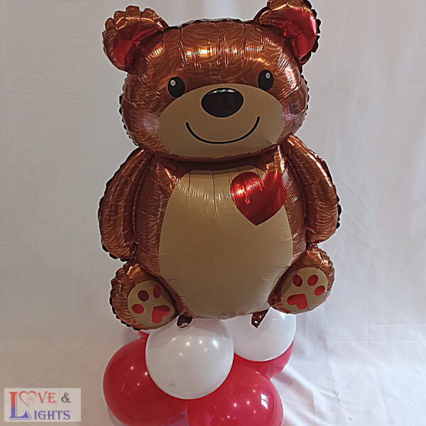 Mackó mintás fólia lufi remek dekoráció Valentin Napra! Szív alakú fólia lufi Felfújható : levegővel vagy héliummal Mérete: 67*91 cm A csomag tartalma: 1 db lufi + 1 db szívószál a felfújáshoz