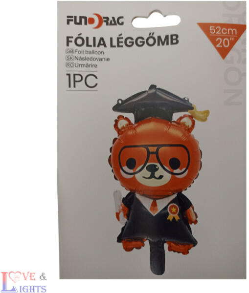 maci mintás ballagási fólia lufi Felfújható : levegővel vagy héliummal Mérete: 44 cm magas A csomag tartalma: 1 db lufi + 1 db szívószál a felfújáshoz és 1 db műanyag pálca, melyre felfűzhető