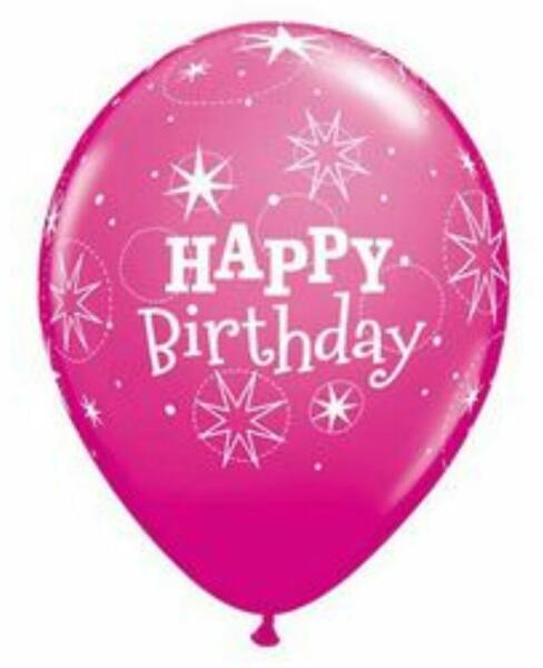 Magenta színű léggömb szülinapra Happy Birthday felirattal és csillagos mintával. Magenta színű léggömb szülinapra Happy Birthday felirattal és csillagos mintával. Anyaga: Latex A csomag tartalma 6db lufi