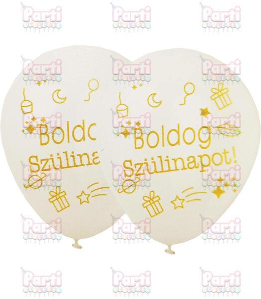 Fehér színű, boldog szülinapot arany feliratos lufi, 30cm-es méretben. Muffin, lufi, torta és egyéb apró mintákkal. Fehér színű, boldog szülinapot arany feliratos lufi, 30cm-es méretben. Muffin, lufi, torta és egyéb apró mintákkal. Mert minden szülinapi buliba kell legalább egy lufi! Mérete: 30cm Anyaga: latex A csomag tartalma 5db lufi