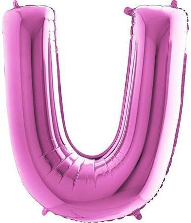 Rózsaszín lufi U betűvel. A lufi tömör fóliából készült.