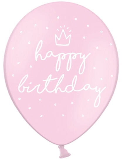 Rózsaszín boldog születésnapot lufi darabszám: 1 db alkalmas levegővel és héliummal történő felfújásra is méret 30 cm, ár egy darabért Latex luf ik HAPPY BIRTHDAY felirattal. Remek dekoráció szülinapi bulikra. Héliummal és levegővel is felfújhatóak.