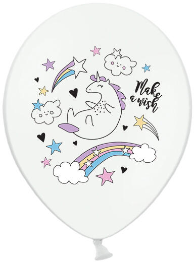 Unikornis lufi darabszám: 1 db alkalmas levegővel és héliummal történő felfújásra is méret 30 cm, ár egy darabért Latex lufi egyszarvú mintával. Gyerekzsúr vagy születésnapi party díszítéséhez alkalmas. A lufik kiváló minőségűek és levegővel vagy héliummal is felfújhatóak.