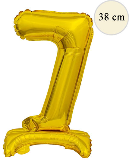 Fólia lufi, arany színben. 38 cm magas, kizárólag levegővel tölthető, a talpa miatt biztonságosan megáll az asztalon vagy a földön is.