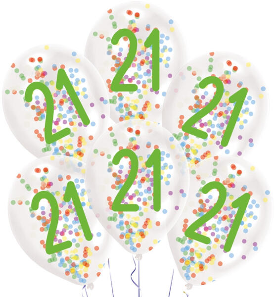 Happy Birthday 21 konfettivel töltött léggömb, lufi 6 db-os Anyaga: latex/gumi Méret: 11 inch/27,5 cm A lufi tartó pálca + csésze külön megvásárolható áruházunkban.
