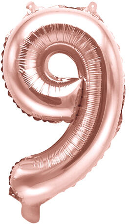 9-es szám mini fólia lufi - rózsaszín arany 35cm mennyiség: 1 db méret: 35 cm héliummal történő felfújásra NEM alkalmas A mini szám fólia lufik kiváló dekorációi minden partynak va gy születésnapi ünnepségnek. Alakítson ki egyedi és különleges party dekorációt . Ezek a fólia lufik nem alkalmasak héliummal történő felfújásra, mégis különleges hangulatot teremte
