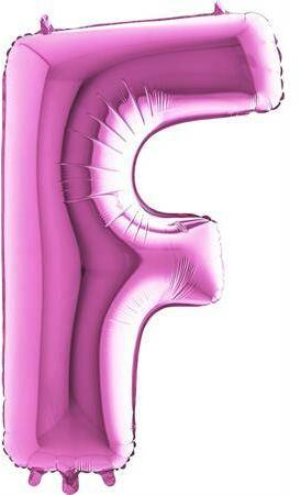 Rózsaszín lufi F betűvel. A lufi tömör fóliából készült.