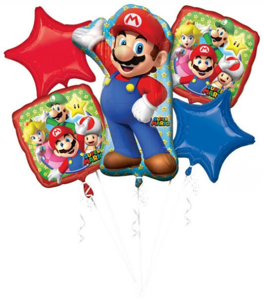 Super Mario Fólia lufi 5 db-os szett5 db fólia léggömb, melyek héliummal vagy levegővel tölthetőek. A lufik önzáró szeleppel vannak ellátva, amely megakadályozza a gáz elszökését. Anyaga: fólia A lufi tartó pálca + csésze külön megvásárolható áruházunkban. Super Mario Fólia lufi 5 db-os szett5 db fólia léggömb, melyek héliummal vagy levegővel tölthetőek. A lufik