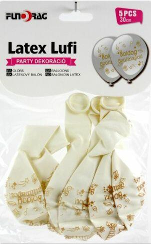 Lufi Boldog Szülinapot fehér/arany 5db 30cm 612809 Lufi Boldog Szülinapot fehér/arany 5db 30cm Befoglaló méretek 12x2x20 cmAnyaga latex