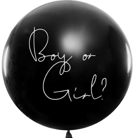 A fekete lufi a lány vagy fiú felirattal alkalmas a születés megünneplésére vagy a babavárás megünneplésére.