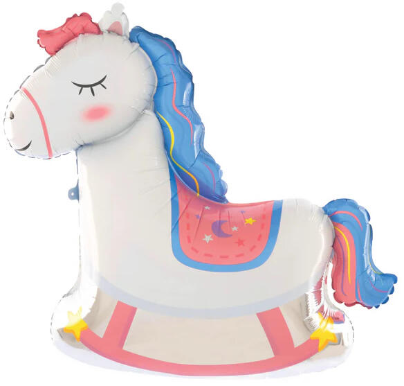 Nem hiányozhat egy jó buliból ez a lufi. Levegővel és héliummal is tölthető, önzáró szeleppel ellátott lufi. Hintaló.
