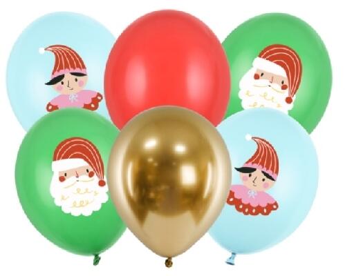Mikulás lufi szett : 6 db 30 cm-s gumi lufi Tölthető levegővel vagy héliummal