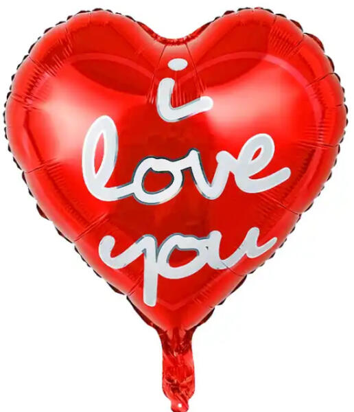 Fólia lufi, 18"/45 cm, szív forma, I Love Love felirattal. Önzáró szelepes, tölthető levegővel vagy héliummal. Egyedi eurofüles csomagolásban.