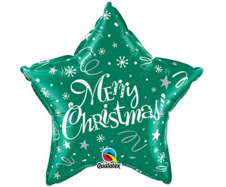 Merry Christmas Green Star, Karácsony fólia lufi 46 cm Fólia léggömb, mely héliummal vagy levegővel tölthető. A lufi önzárószeleppel van ellátva, amely megakadályozza a gáz elszökését. Méret: 51 cm Anyaga: fólia A lufi tartó pálca + csésze külön megvásárolható áruházunkban ( KFJ_DPA9911929vagyKFJ_DPA9917359 ).