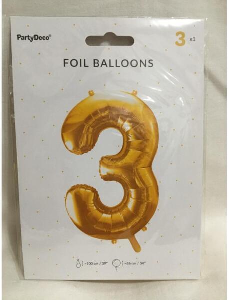 86 cm nagyságú, arany színű, 3-as szám alakú, héliummal és levegővel is felfújható, önzáró szelepes fólia lufi. FIGYELEM! A fólia léggömbök érzékenyek a szélsőséges hőmérséklet változásokra. Hidegben elernyedhetnek, melegebb helyen újra kifeszülhetnek, tágulhatnak, akár el is durranhatnak! A fólia léggömbök vezethetik az áramot!