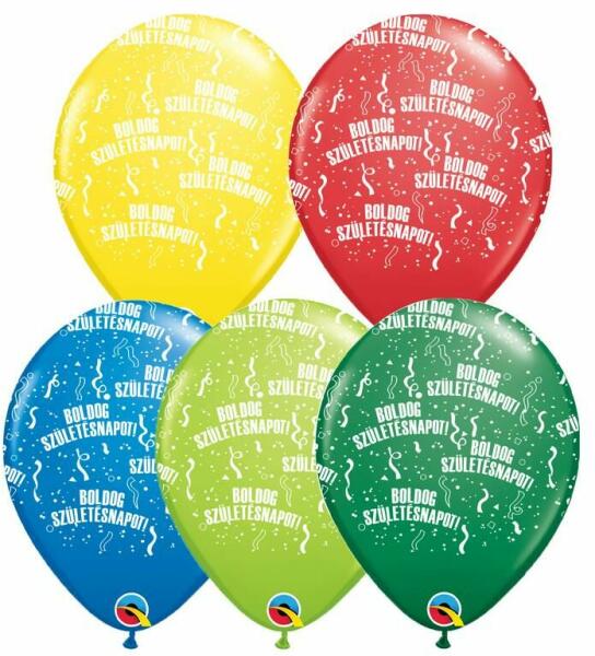 28cm méretű születésnapi lufi "Festive Assortment" - vegyes színekben. Boldog születésnapot felirattal. 28cm méretű születésnapi lufi "Festive Assortment" - vegyes színekben. Boldog születésnapot felirattal. Színek: Piros, Narancssárga, Türkiz kék, Napsárga, Rózsaszín, Orgona Lila és Lime Zöld (nem választható) Mérete: 11 inch (28 cm). Anyaga: latex. A Qualatex léggömb