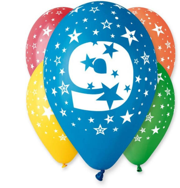 Happy Birthday 9 Star léggömb, lufi 5 db-os 12 inch (30cm)Anyaga: latex/gumi. Mérete: 30 cm (12 inch) A lufi tartó pálca + csésze külön megvásárolható áruházunkban. Happy Birthday 9 Star léggömb, lufi 5 db-os 12 inch (30cm)Anyaga: latex/gumi. Mérete: 30 cm (12 inch) A lufi tartó pálca + csésze külön megvásárolható áruházunkban.
