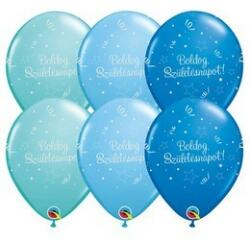 Kék színek. Mérete: 11 inch (28 cm). Anyaga: latex. A Qualatex léggömb 100%-osan környezetbarát, ugyanannyi idő alatt bomlik le, mint egy tölgyfalevél.