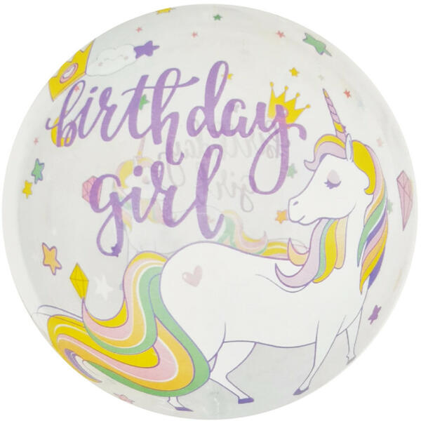 50 cm átmérőjű, gömb alakú buborék lufi Happy Birthday felirattal, mely egy születésnapi party igazán látványos dekorációs kelléke lehet. A buborék lufik különlegessége, hogy majdnem szabályos gömb alakúak és egy különleges celofánhatású műanyagból készülnek, melynek köszönhetően tartósabb minőséget biztosítanak. Tulajdonságok: Anyaga: műanyag A lufi méret