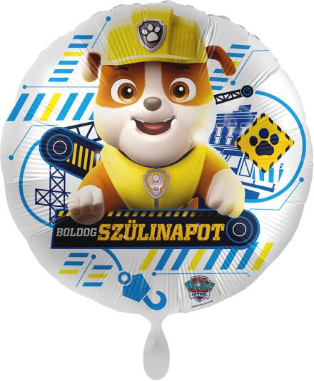 Fólia lufi - Boldog szülinapot Rubble Színesítse a születésnapi dekorációt a kedvenc Mancs őrjárat motívummal ellátott fólia lufikkal . A fólia lufik egyedi, esztétikus kiegészítői minden partinak vagy társasági eseménynek . Készítsen lufi díszítést a születésnapi partira és varázsoljon felejthetetlen napot az ünnepeltnek és vendégeinek. alkalmas levegővel vagy h