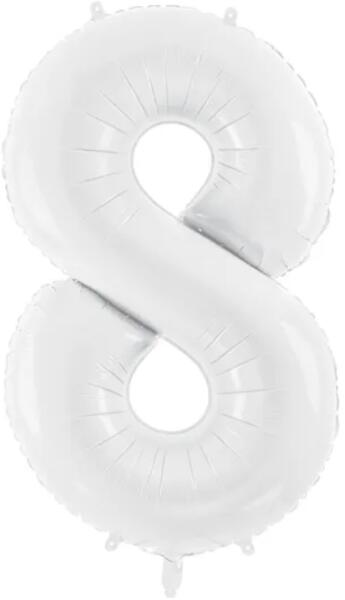 8-as születésnapi fólia lufi fehér 86 cm Elevenítse fel születésnapi dekorációját szám formájú fólia lufikkal . Drágábbak, mint a klasszikus latex ballonok, de előnyük a minőség. A levegővel felfújt fólia lufi több hónapig is kibírja jelentősebb változtatások nélkül. Ha felfújunk egy fóliás léggömböt héliummal, akkor körülbelül 14 napig repülhet , míg az