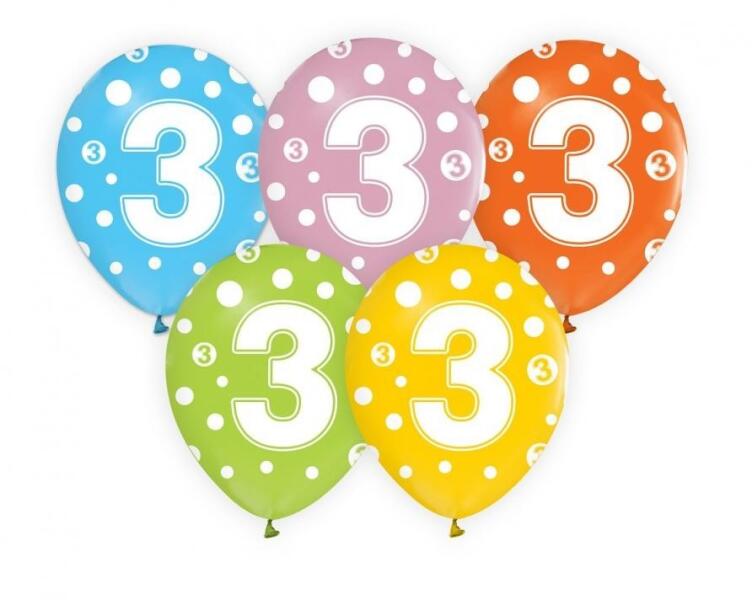 Happy Birthday 3 léggömb, lufi 5 db-os 12 inch (30cm) Anyaga: latex/gumi Mérete: 30 cm (12 inch) A lufi tartó pálca + csésze külön megvásárolható áruházunkban (DPA9911929).