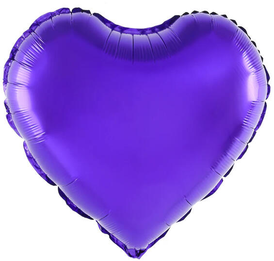 Fólia lufi, szív alak. Színe:sötét lila Mértet: 45 cm. Önzáró szeleppel ellátva, tölthető levegővel vagy héliummal. Egyesével csomagolva.