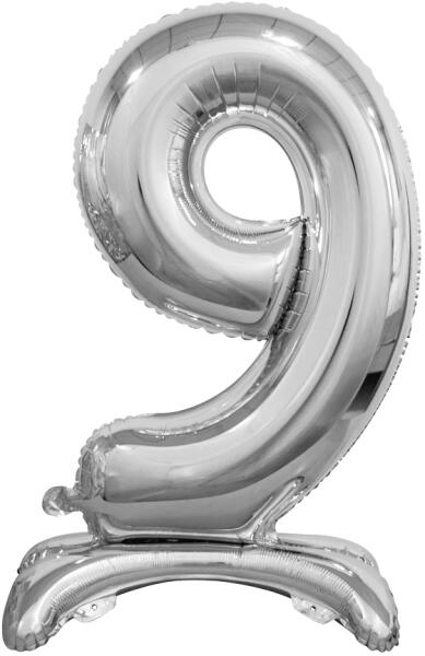 Talpas álló fólia lufi 9-es ezüst 74 cm mennyiség: 1 db méret: 74 cm alkalmas levegővel történő felfújásra Színesítse a születésnapi ünnepséget szám formájú talpas álló fólia lufival . Kiváló minőségű, nem légáteresztő anyagból készült. Az álló fólia lufi előnye, hogy egyedül is megáll, bárhová helyezi. Levegővel felfújva pár hónapig is megtartja vá