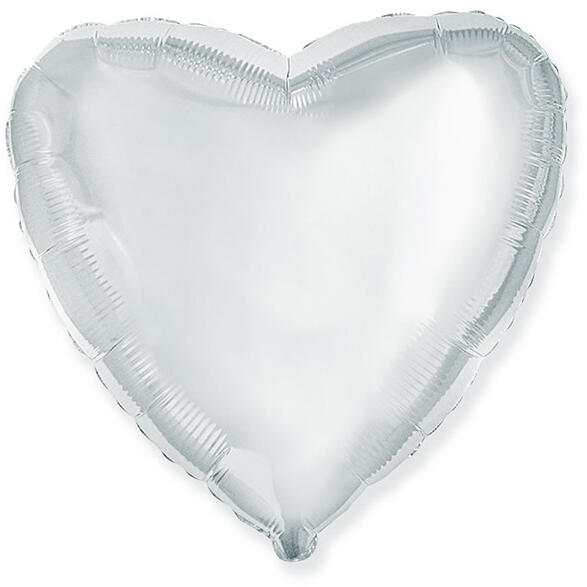 Pálcás fólia lufi, 9"/23cm, szív alakú, ezüst színű. Önzáró szelep nélkül, csak levegővel tölthető. Ömlesztett formában, nincs egyesével csomagolva.