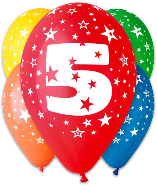 Gumiból készült, 5-ös számot ábrázoló mintával ellátott lufik, vegyes színekben. A készlet 5 db lufit tartalmaz, ezekkel feldobhatod a saját vagy barátaid buliját! Csomagolás méretei: 14 x 20 x 3 cm