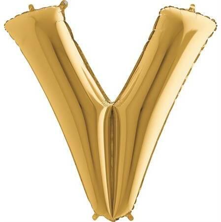 Arany léggömb V betű. A lufi tömör fóliából készült.