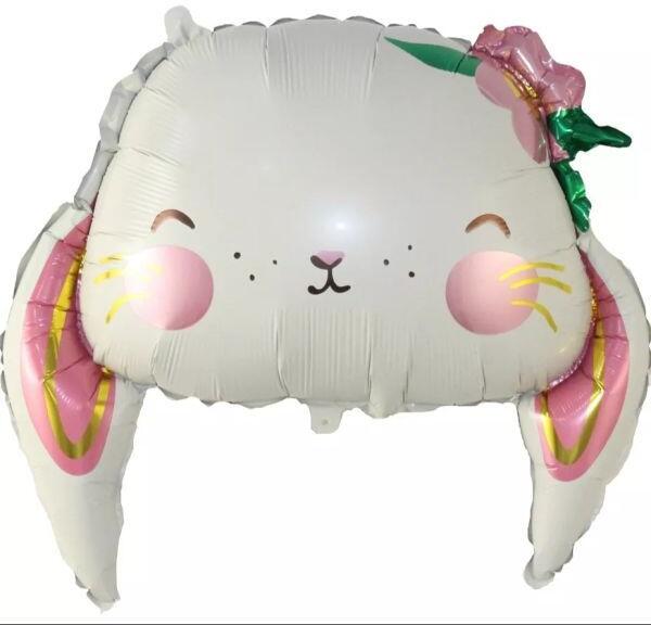 Nyuszifej alakú fólia lufi húsvétra vagy nyuszifanoknak. Szelepes, levegővel és héliummal is fújható. A lufi mérete: 44 x 50 cm