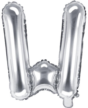 Fólia léggömb, 'W' betű, csak levegővel tölthető, önzáró szelepes, egyesével csomagolva. A rajta lévő fülecskék segítségével rögzíthetőek. Magassága: 35 cm. Színe: ezüst.