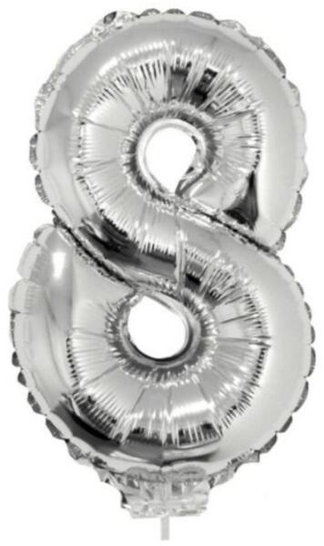 8-as számjegy, ezüst színű csillogó lufi formában! A lufi csillogó fóliából készült. A lufival ki tudod írni, hány éves lett az ünnepelt szülinapos, a léggömböt héliummal és levegővel is fel lehet tölteni. A mérete: 41,6 cm. /> 6 - 99 éves /> Lányoknak és fiúknak ajánljuk.