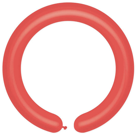Cső alakú lufi, formázható, piros színben, 100 darab/csomag. Felfújt állapotban szélessége 5 cm, hossza: 110 cm (2 X 55").