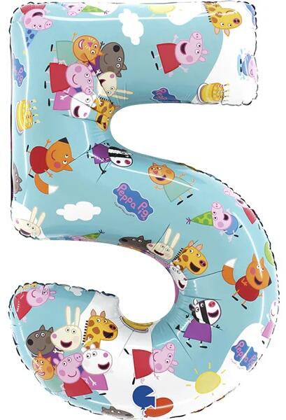 Fólia lufi 5-ös születésnapi szám - Peppa Malac 66 cm Színesítse a születésnapi ünnepséget Peppa Malac motívumú szám formájú fólia lufikkal . Drágábbak ugyan, mint a klasszikus latex lufik, de előnyük a minőség és a nem áteresztő képesség . A levegővel felfújt fólia lufik jelentősebb változások nélkül, néhány hónapig is kibírják. Abban az esetben, ha a fól