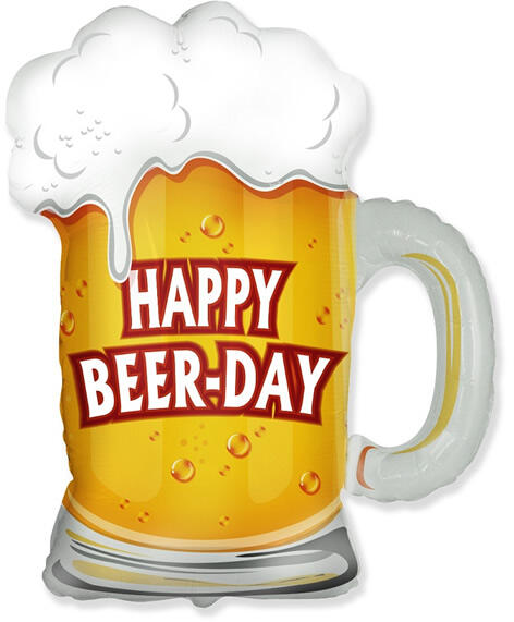Sörös pohár, Happy Beer Day felírattal. Pálcás lufi.