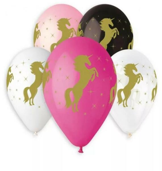 Gold Unicorn, Unikornis léggömb, lufi 5 db-os 13 inch (33cm) Anyaga: latex/gumi Mérete: 33 cm (13 inch) A lufi tartó pálca + csésze külön megvásárolható áruházunkban ( KFJ_DPA9911929vagyKFJ_DPA9917359 ).