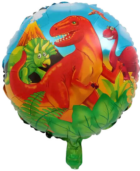 TYRANOSZAURUSZ REX, gömb alakú fólia lufi, átmérője 45 cm. HÉLIUMMAL FÚJHATÓ, ÖNZÁRÓ SZELEPES.