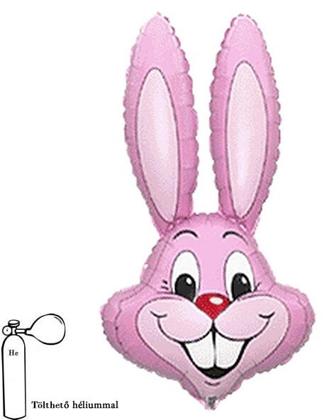 Fólia léggömb, nyuszi fej. Héliummal és levegővel is fújható, önzáró szeleppel. 100 cm.