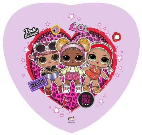 Fólia lufi, 18"/45cm, szív, LOL bébik, rock, rózsaszín. Önzáró szelepes, tölthető levegővel vagy héliummal.